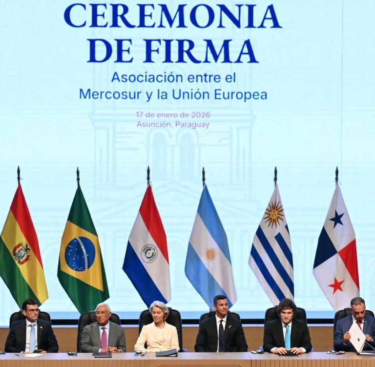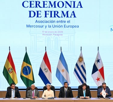 El 17 de enero de 2026, en Asunción, Paraguay, la Unión Europea y el Mercosur formalizaron un acuerdo de libre comercio que pone fin a 25 años de negociaciones y promete abrir una de las zonas económicas más grandes del mundo, con más de 700 millones de consumidores y casi 20 % del PIB global.